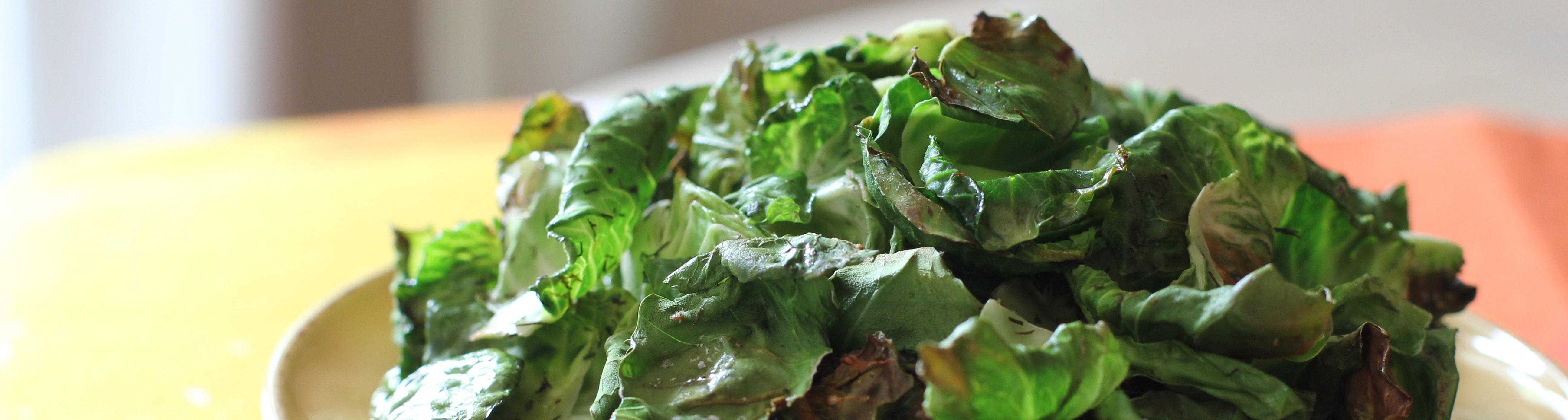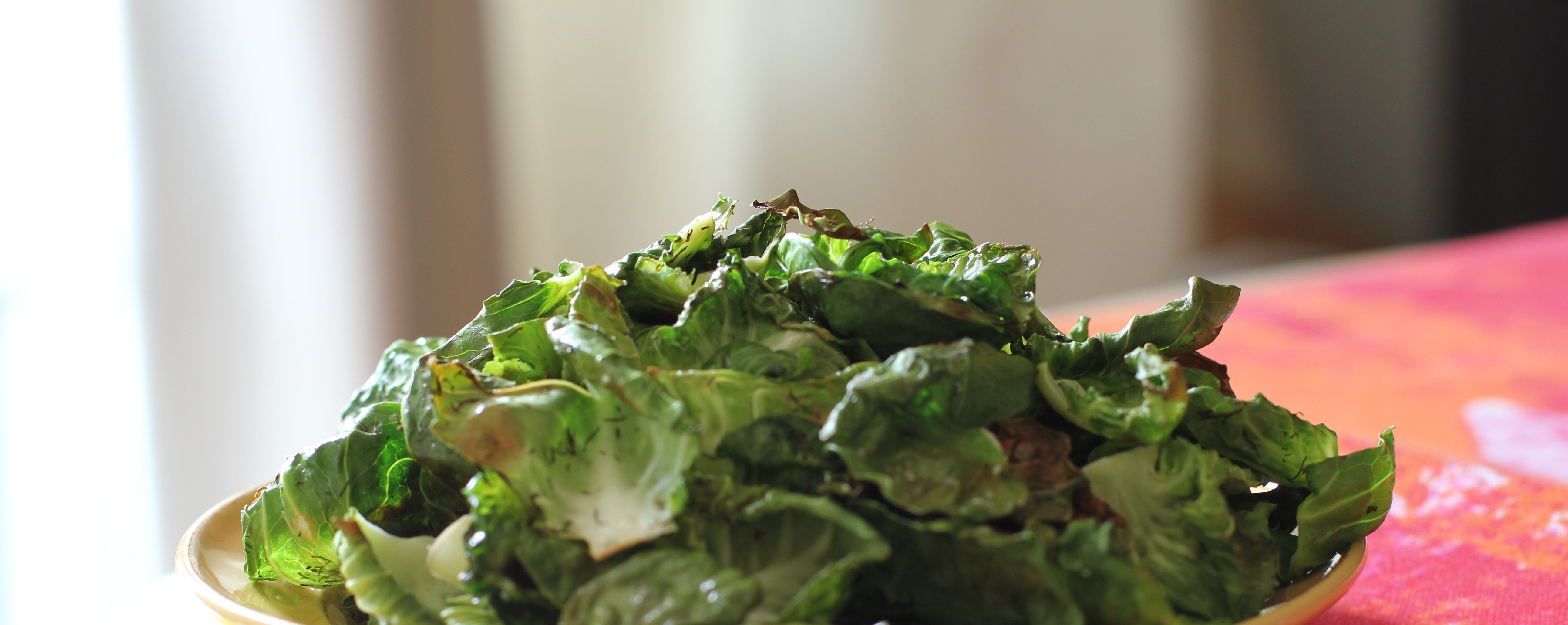 Next time you make some brussels sprouts, don’t toss out the outer leaves that are sometimes removed for cleaning. Set them aside and wash them well. These are the lovelies that will be getting crisped up with some lemon and dill. They make an awesome healthy snack for movie night (or whatever crazy shenanigans you’re getting into tonight). Your movie might not be great but this idea certainly gets two thumbs up.